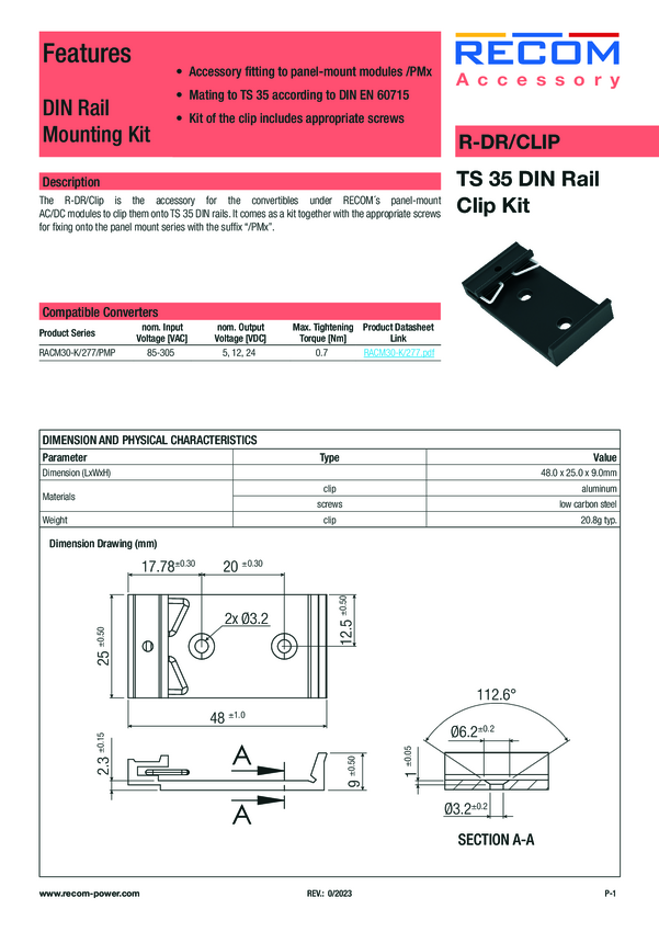 Klips DIN RECOM R-DR/CLIP 1 szt.