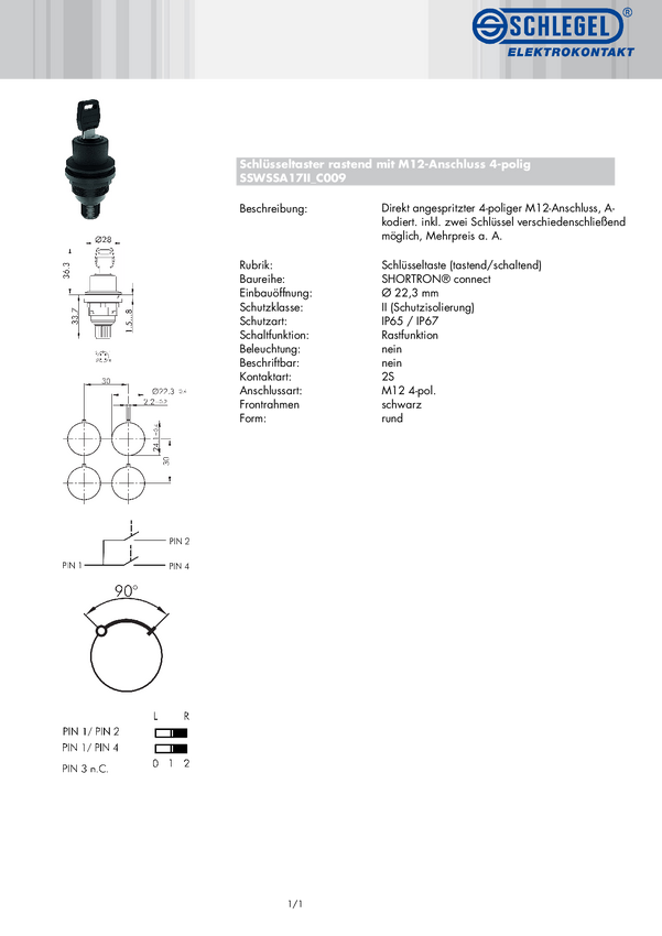 Przycisk kluczykowy Schlegel SSWSSA17II_C009 1 szt.