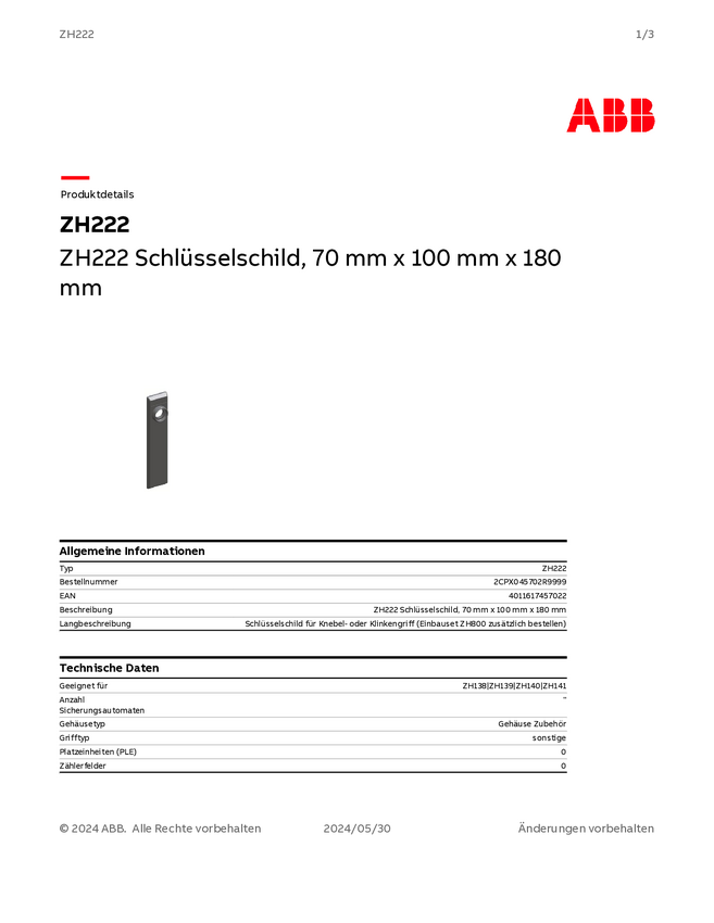 Striebel & John 2CPX045701R9999 Tabliczka na klucze 1 szt.