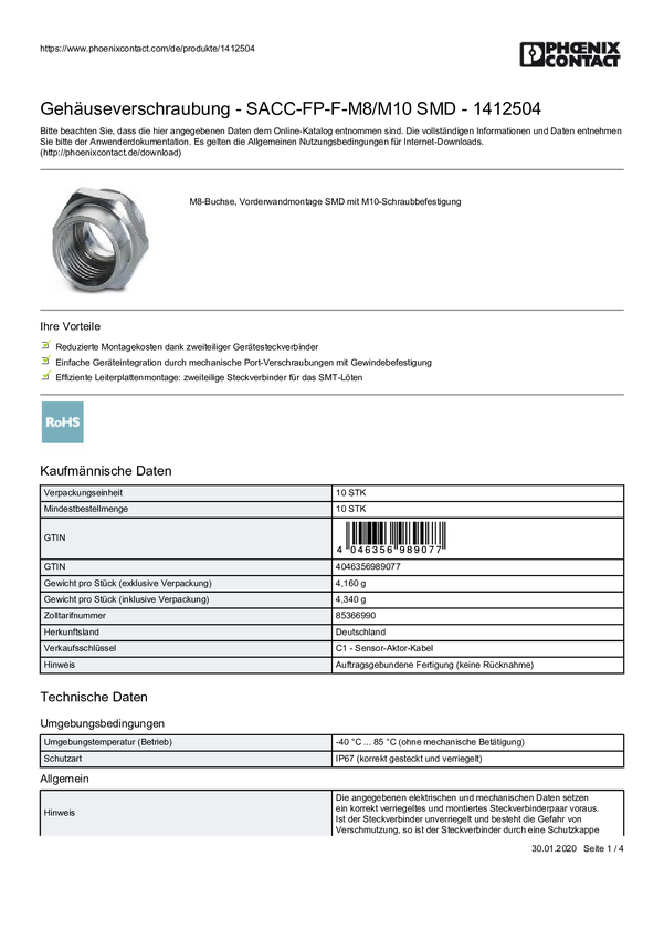 Phoenix Contact 1412080 Kołnierz montażowy SACC-FP-M-M12/PRESS SMD, 10 szt.