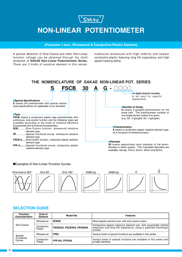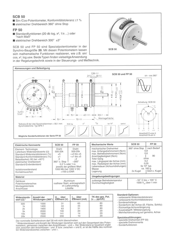 Potencjometr z charakterystyką nieliniową sin-cos; Potencjom etr drutowy; servo; tolerancja 1%; 1 obrotowy; Średnica 50m m; ośka 6mm; (5 końcówek); 2W; Produkcja firmy Sakae; Rezystancja 5 kohm
