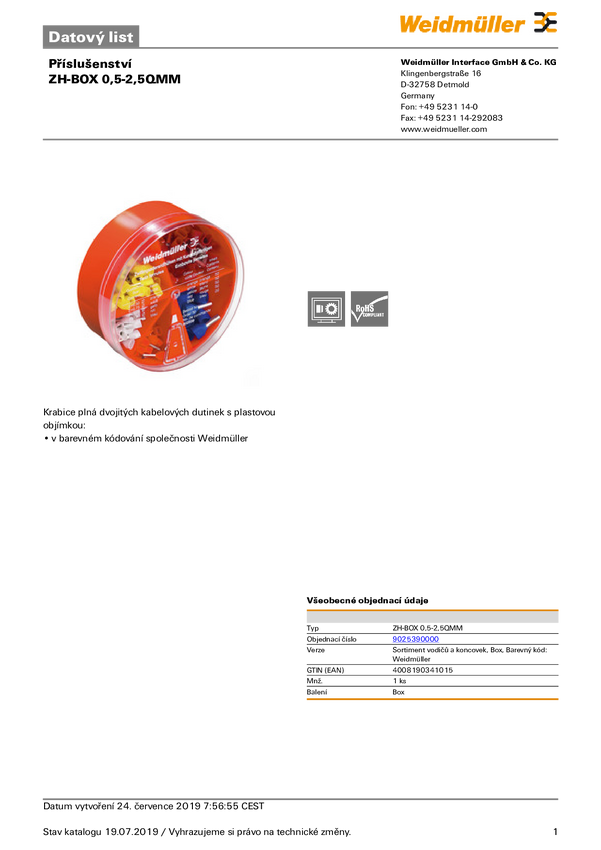 Weidmüller 9025390000 Zestaw podwójnych końcówek ZH-BOX 0,5-2,5QMM, z częściową izolacją , 0.5 mm², 220 szt.