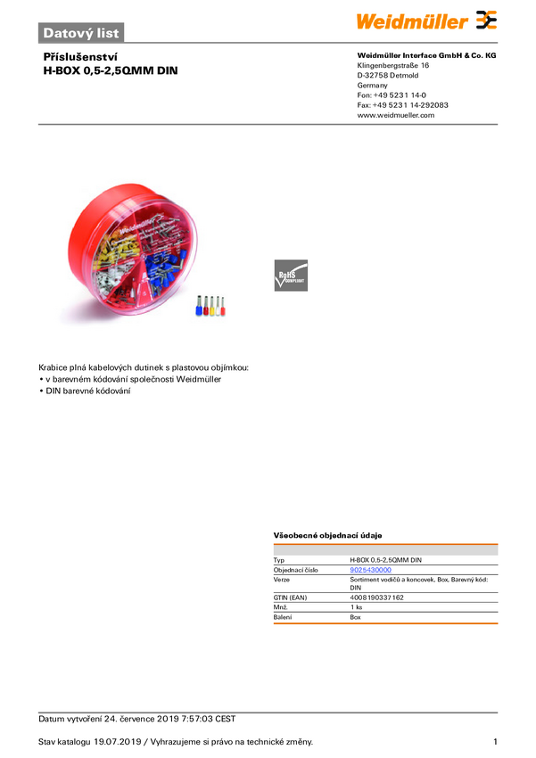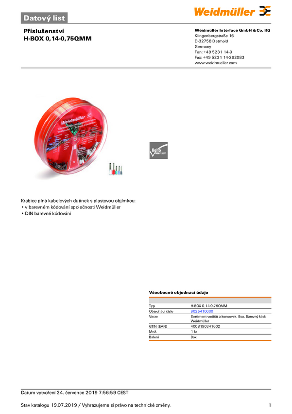 Weidmüller 9025410000 Zestaw końcówek rurkowych H-BOX 0,14-0,75QMM, z częściową izolacją , 0.14 mm², 150 szt.