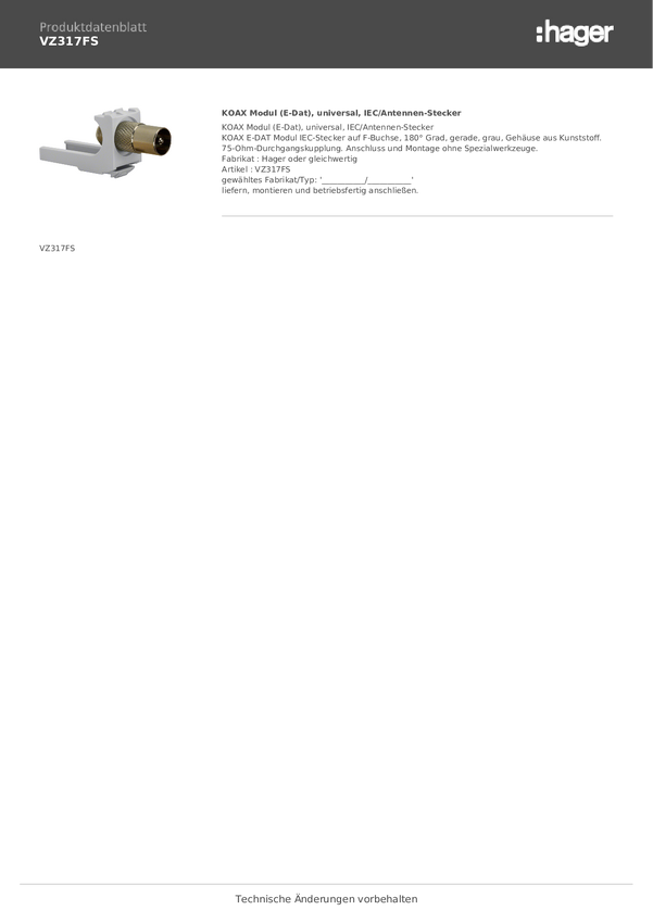 Hager VZ317FS Moduł Koax E-Dat 1 szt.