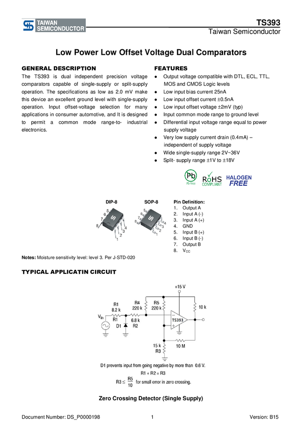 Układ scalony liniowy - komparator Taiwan Semiconductor TS393CS RLG SOP-8 taśma na dużej rolce