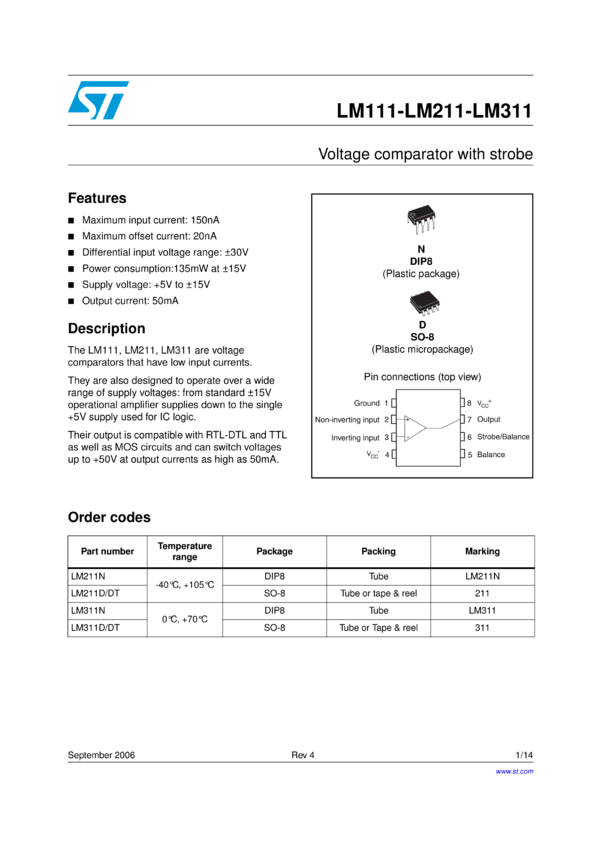 Układ scalony; LM319N/NOPB; komparator; szybki; Cmp: 2; 5-36V; 80ns; otwary kolektor; DIP14; THT; TEXAS INSTRUMENTS; RoHS
