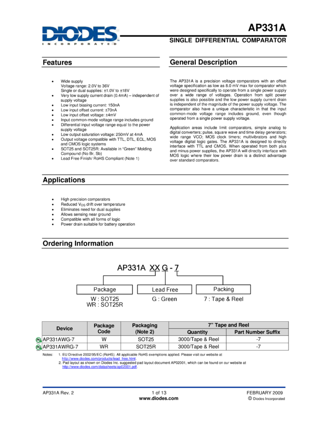 Komparator AP331AWRG-7, SOT25R, Diodes