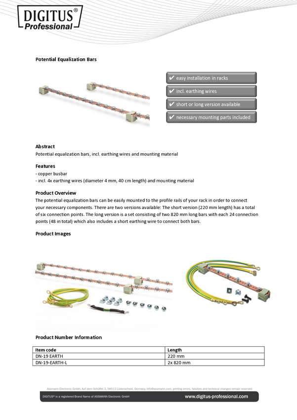 Szyna kompensacji potencjału do szaf sieciowych, 2 sztuki, 820 mm, 2x 24 punktów przyłączeniowych, w tym kabli uziemiają