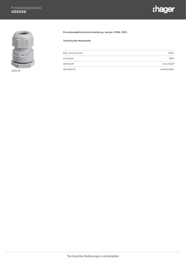 Hager VZ025D Połączenie śrubowe z kompensacją ciśnienia M25 1 szt.