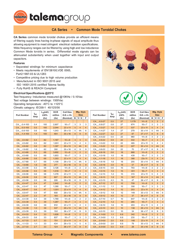 Dławik z kompensacją prądu Talema CAV CAV-2,0-5,6 5.6 mH 2 A 1 szt.