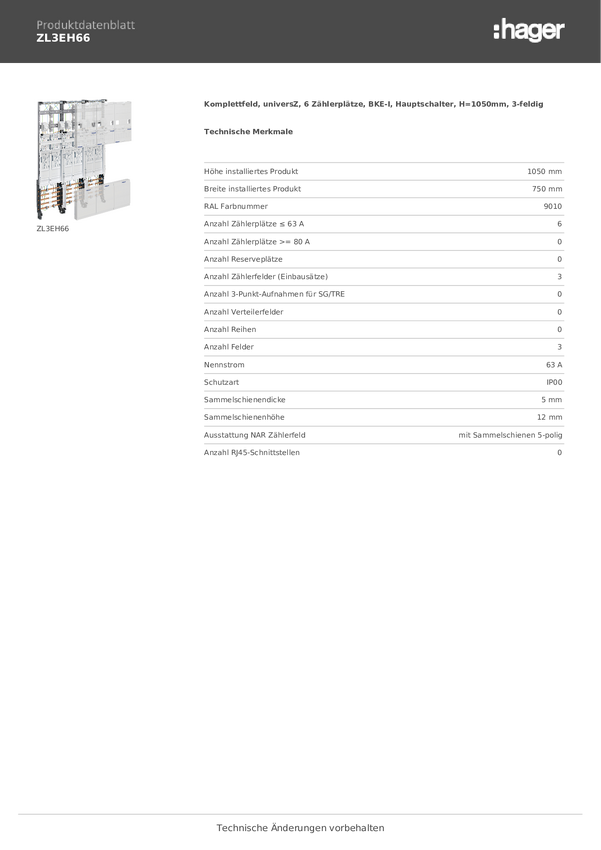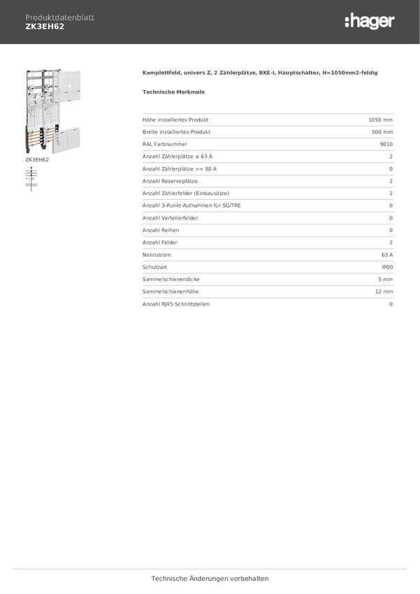 Kompletne pole Hager ZH3EH22 ZH3EH22, 250 mm x 1050 mm , 1 szt.