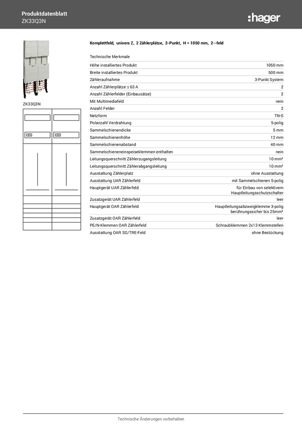 Kompletne pole Hager ZK33Q3N, 500 mm x 1050 mm , 1 szt.