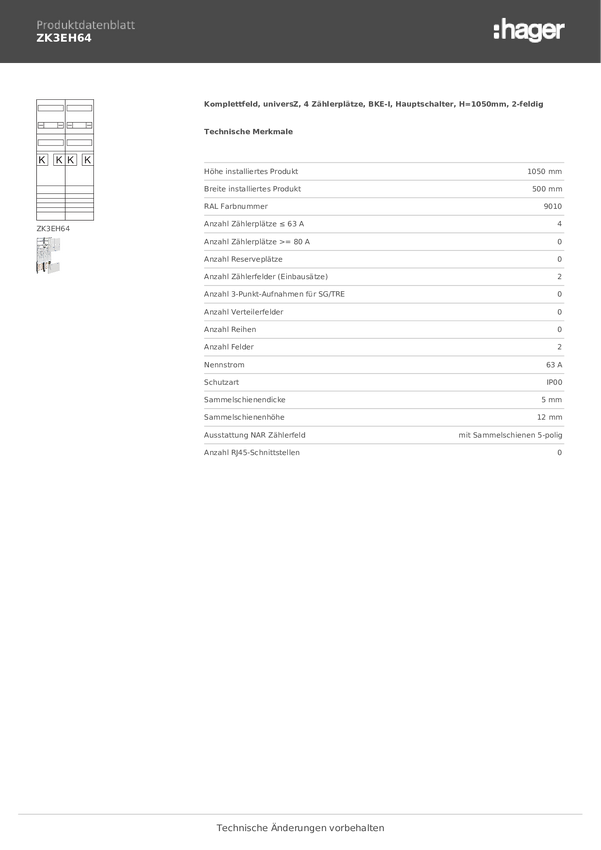 Kompletne pole Hager ZK3EH64, 500 mm x 1050 mm , 1 szt.