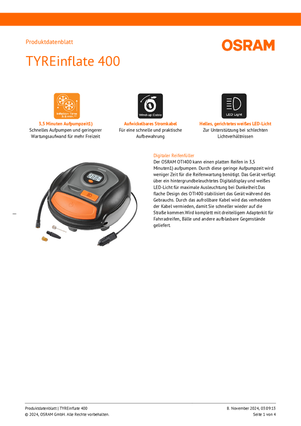 Osram Automotive OTI400 Kompresor 5.5 bar