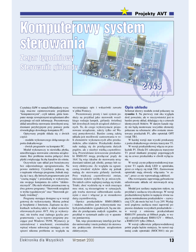 AVT2445/1 B Komputerowy system sterowania, zegar tygodniowy, sterownik girlandy - zestaw do samodzielnego montażu