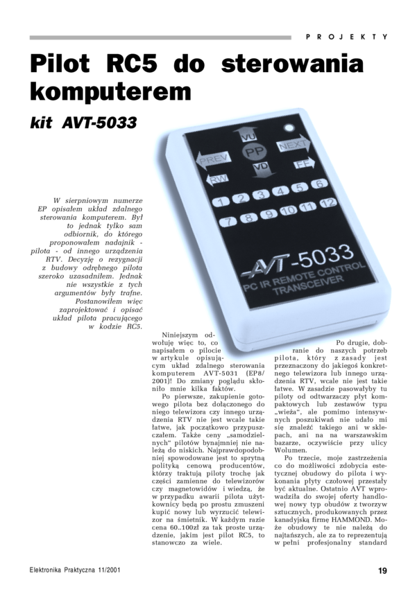 AVT3015 B Wielofunkcyjny komputerowy pilot RC5 - zestaw do samodzielnego montażu