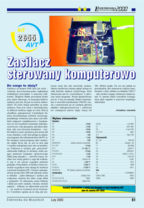 AVT2655 Zasilacz sterowany komputerowo