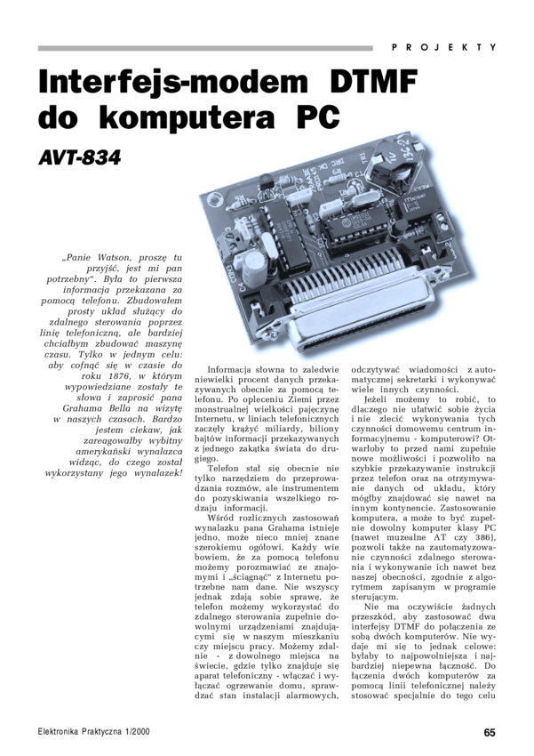 AVT834 A Interfejs - modem DTMF do komputera PC - płytka drukowana