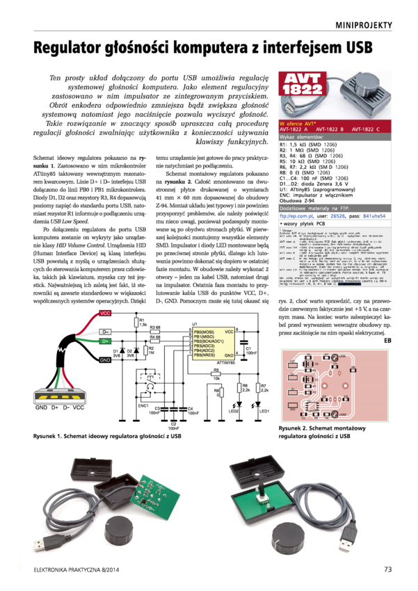 AVT1822 Regulator głośności komputera z interfejsem USB