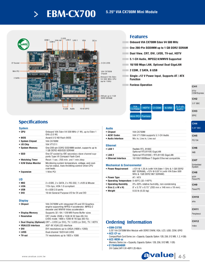 Komputer jednopłytkowy 5.25" EBM-CX700 5.25″ VIA CX700M Mini Module,