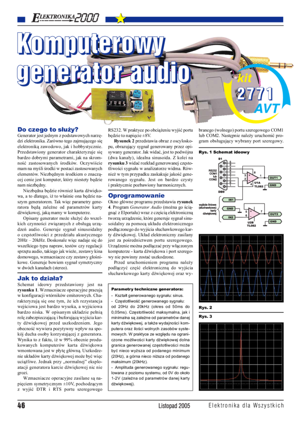 AVT2771 B Komputerowy generator audio - zestaw do samodzielnego montażu
