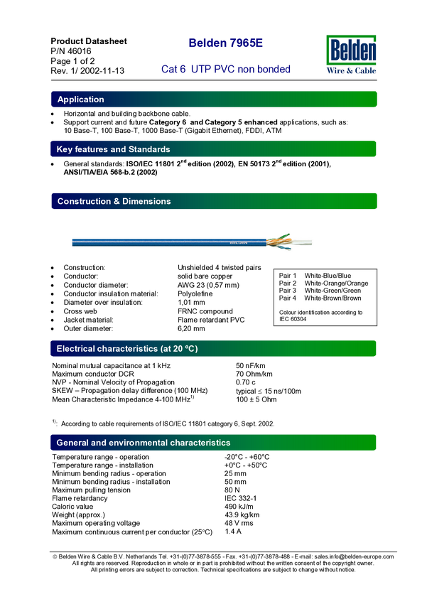 Skrętka komputerowa U/UTP kat.6 drut 23AWG, CU, PVC dł.500m