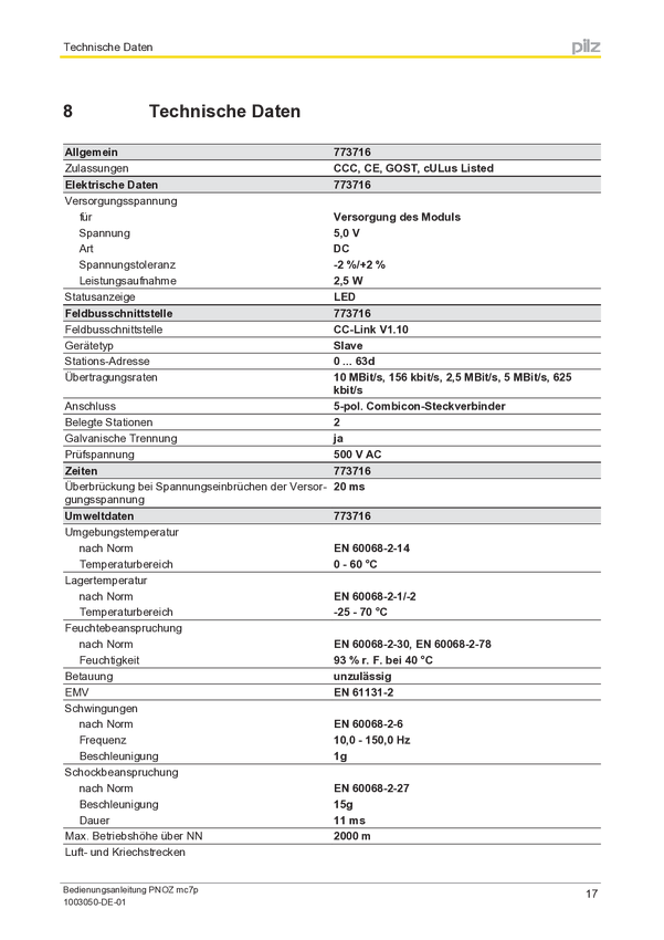 Moduł komunikacji PLC PILZ PNOZ mc7p CC-Link coated version 773725, 1 szt.