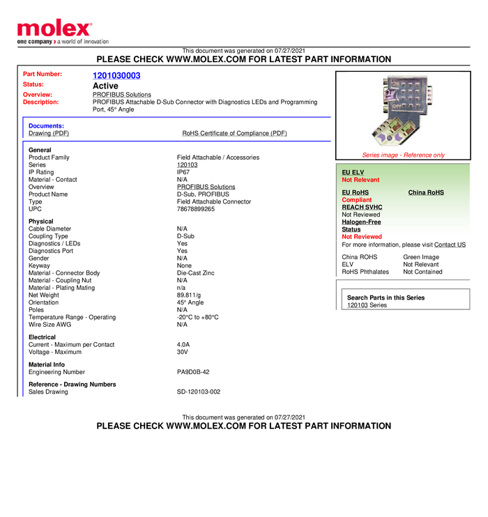 Molex 1201030003 Moduł komunikacyjny Molex WOD Industrial Solution, 1 szt.