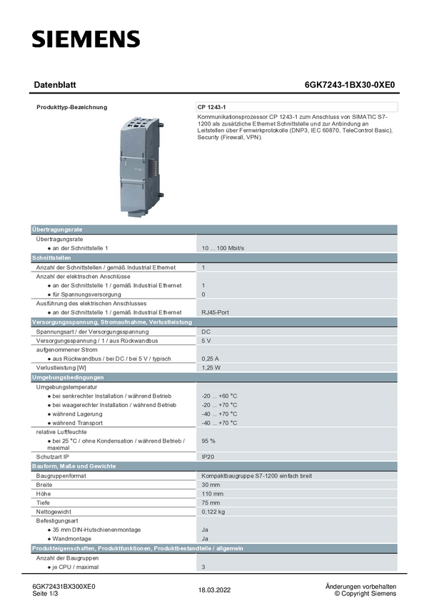 Siemens 6GK7243-1BX30-0XE0 Procesor komunikacyjny PLC
