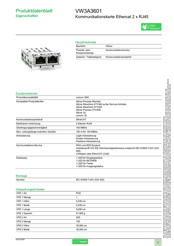 Moduł komunikacyjny Schneider Electric VW3A3601