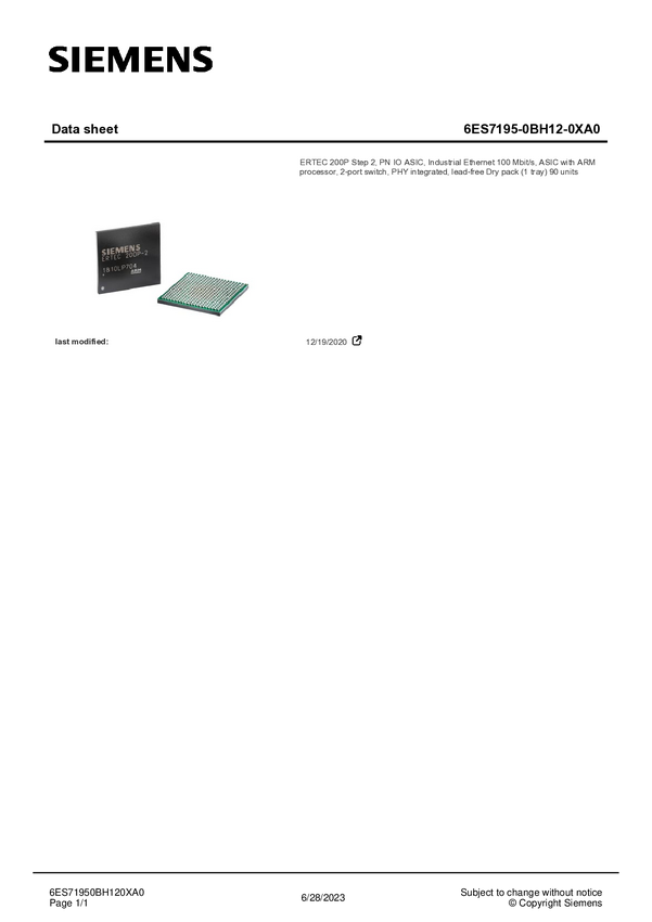 Siemens 6ES71950BH120XA0 6ES7195-0BH12-0XA0 Procesor komunikacyjny PLC