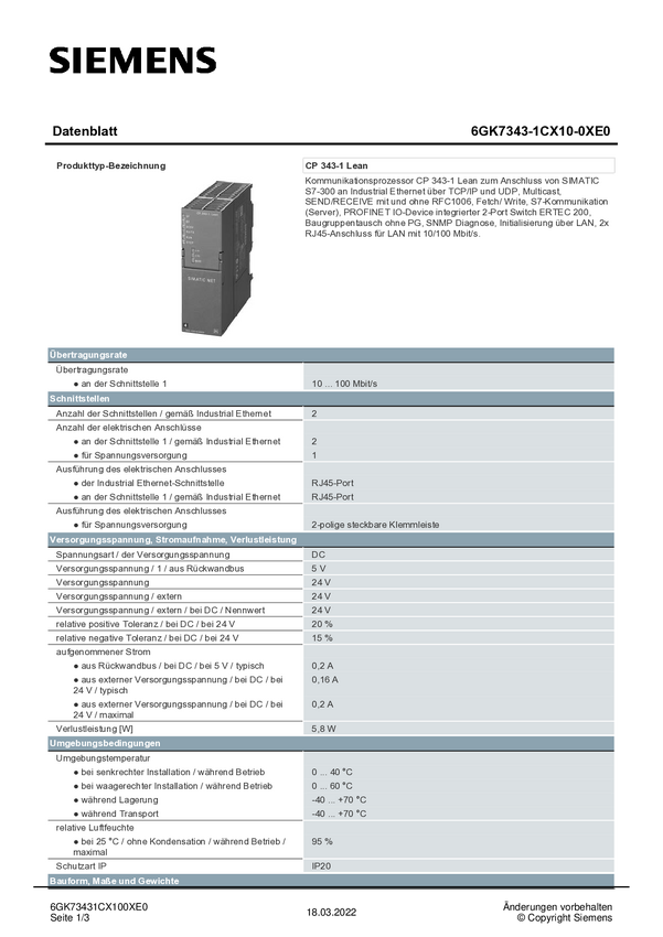 Siemens 6GK7343-1CX10-0XE0 Procesor komunikacyjny PLC