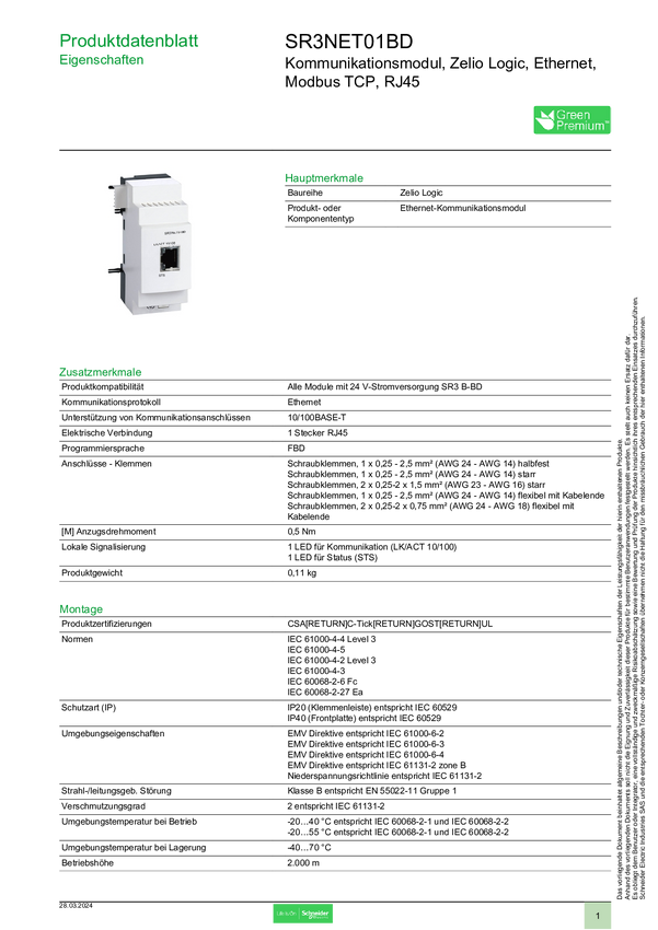 Moduł komunikacji PLC Schneider Electric SR3NET01BD