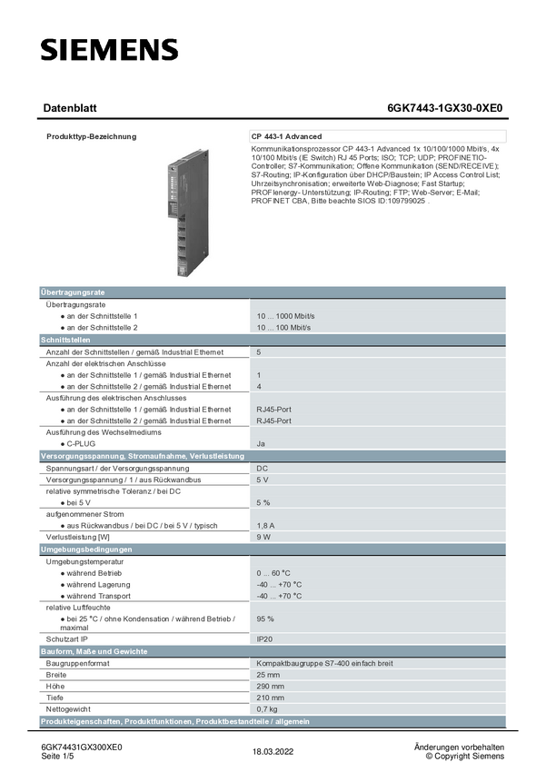 Siemens 6GK7443-1GX30-0XE0 Procesor komunikacyjny PLC