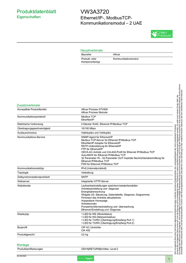Moduł komunikacyjny Schneider Electric VW3A3720