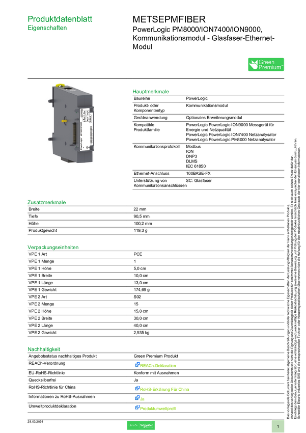 Schneider Electric Moduł komunikacyjny, światłowód do sieci światłowodowych