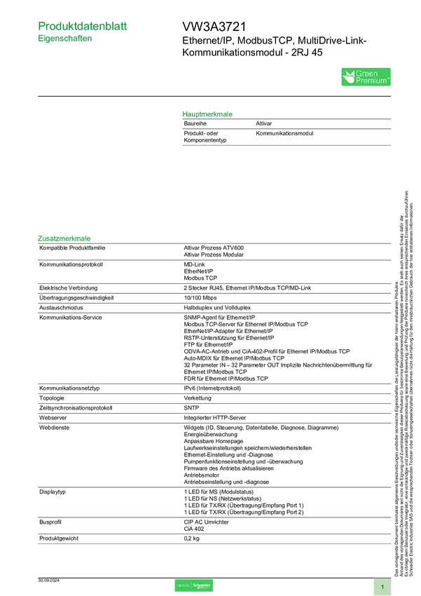 Moduł komunikacyjny Schneider Electric VW3A3721