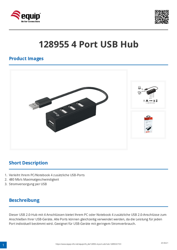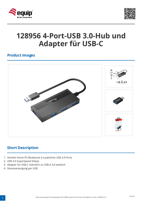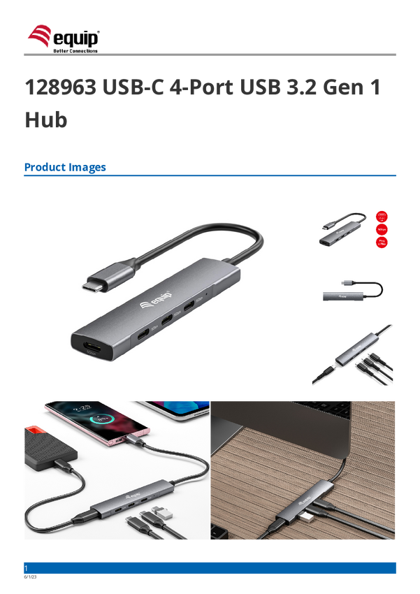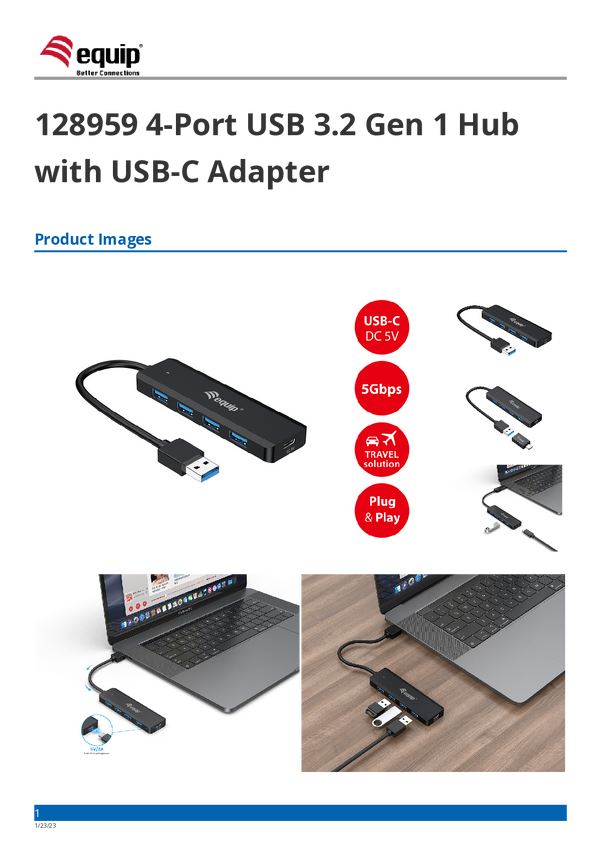 Wyposaż w 4-portowy koncentrator USB 3.2 Gen 1 i adapter dla USB-C