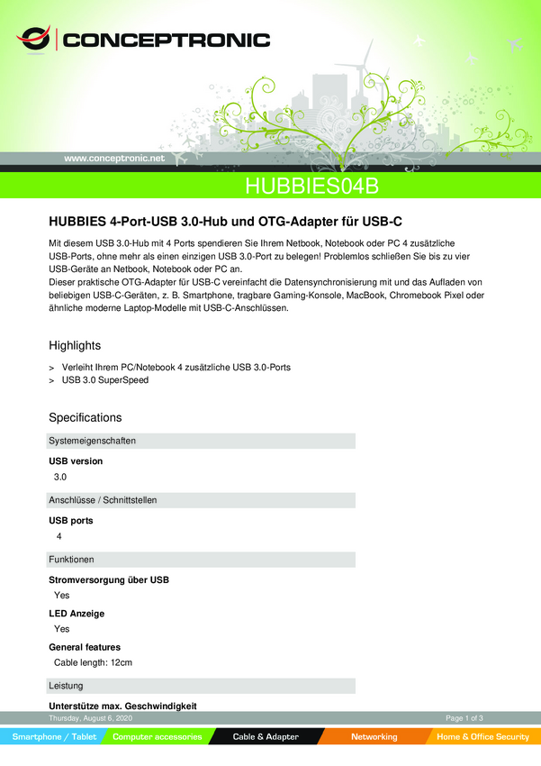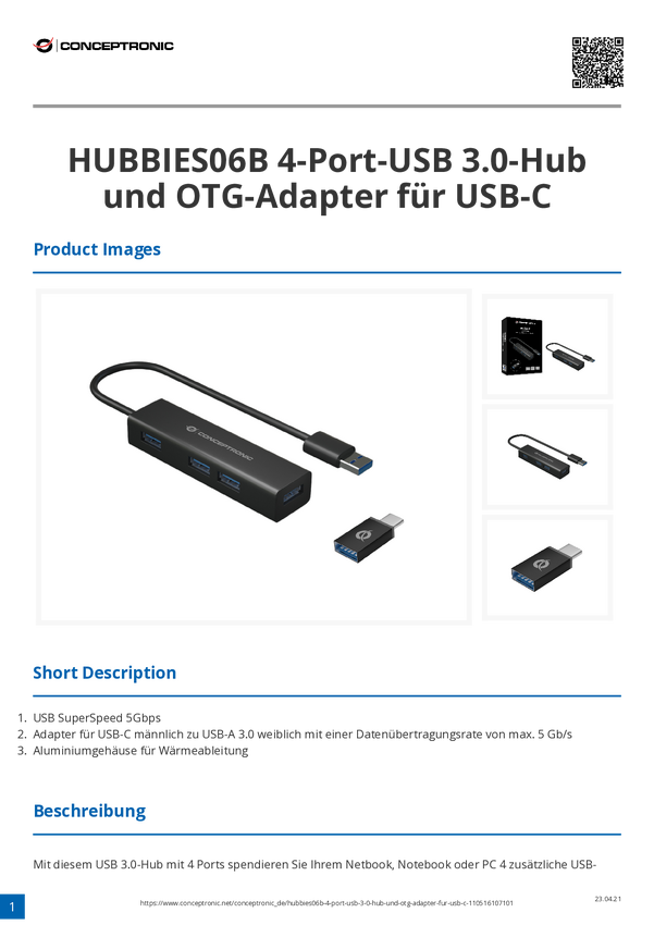 Conceptronic HUBBIES 4-portowy koncentrator USB 3.0 i adapter OTG dla USB-C®