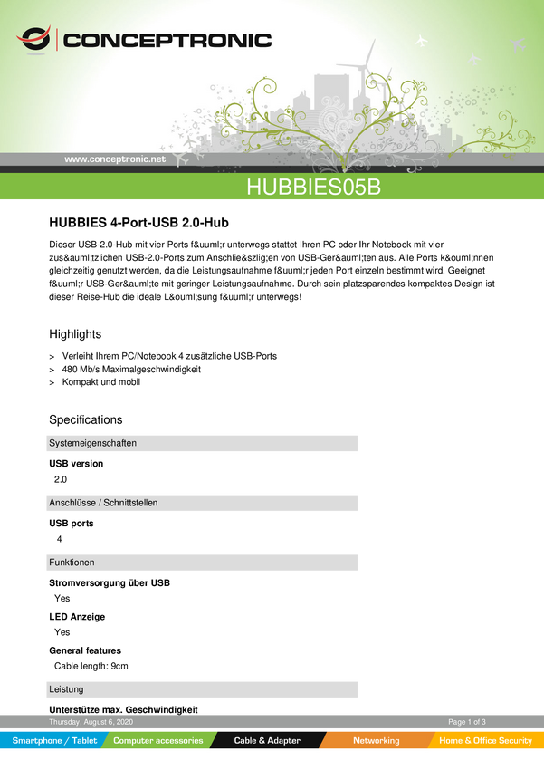 Koncentrator interfejsowy Conceptronic HUBBIES03W USB 3.2 Gen 1 (3.1 Gen 1) Micro-B 5000 Mbit/s Biały