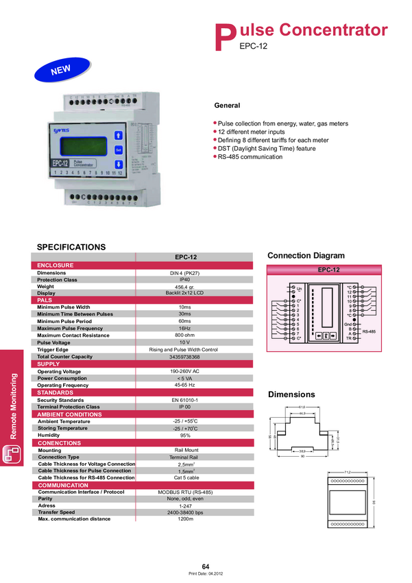 Koncentrator liczników impulsów Entes EPC, 12 wejść, montaż na szynie nośnej