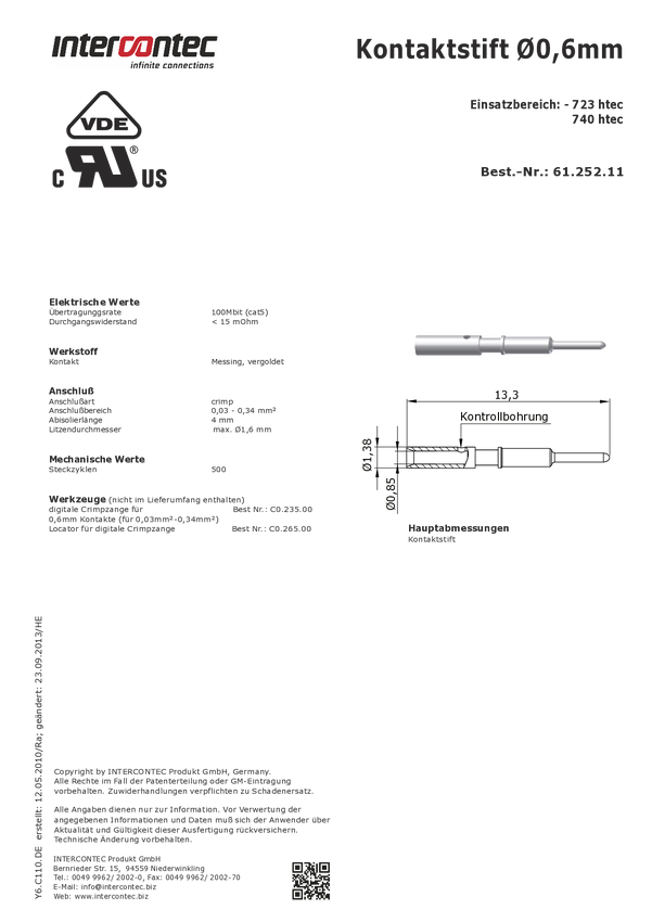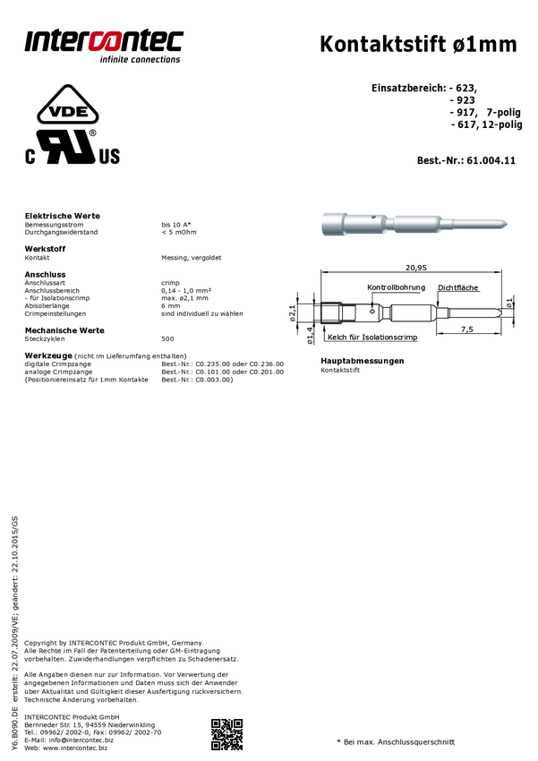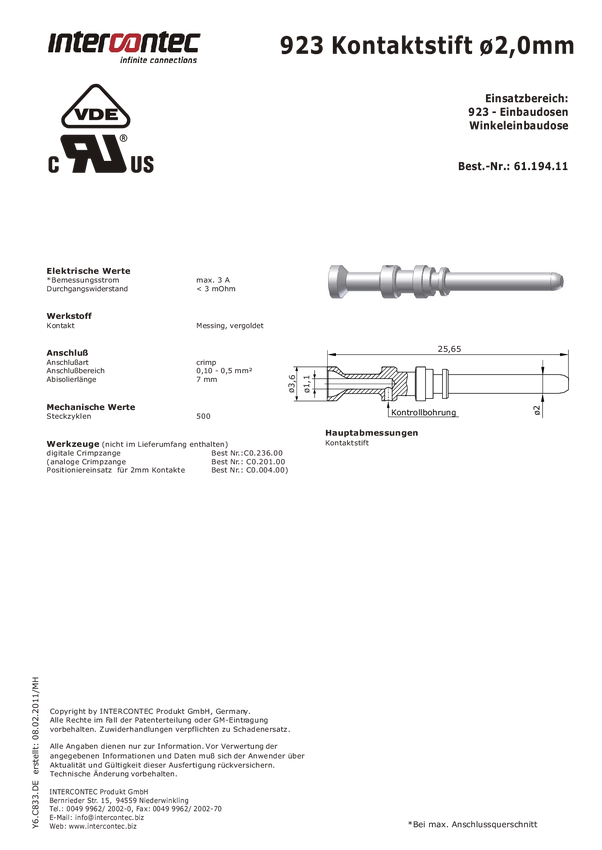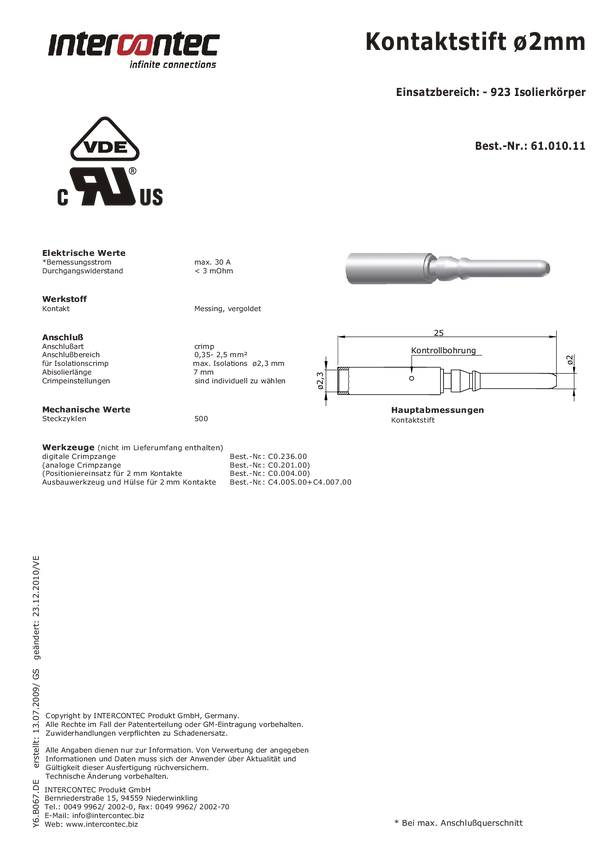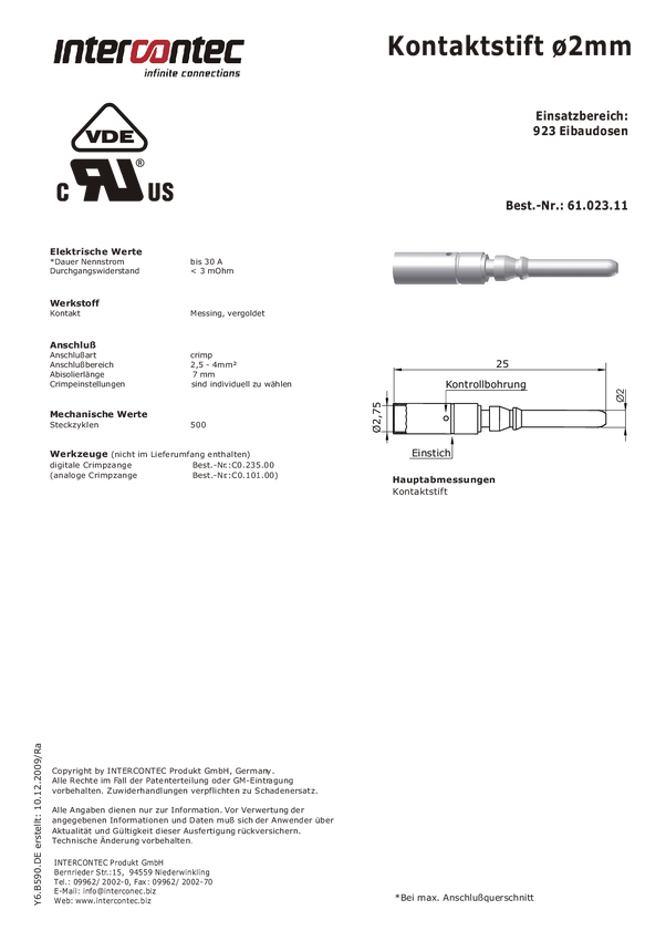 Kołek kontaktowy Intercontec 61.023.11, 1 szt.