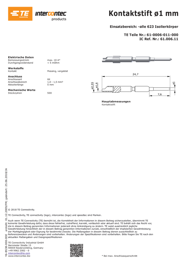 Kołek kontaktowy Intercontec 61.006.11, 1 szt.