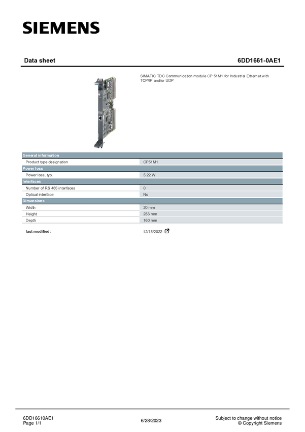 Siemens 6DD1661-0AE1 Moduł kontrolera PLC