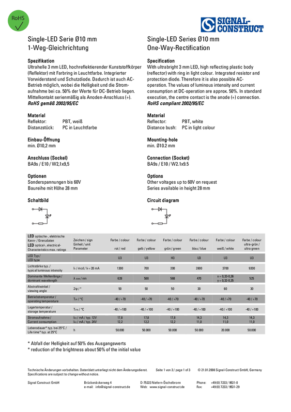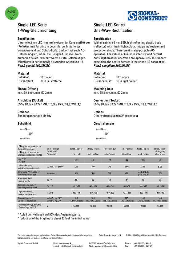 Kontrolka diodowa LED Signal Construct, biała, MEDB2562
