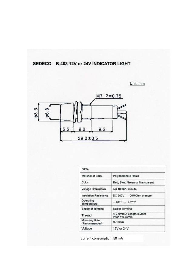 Kontrolka wskaźnikowa standardowa Sedeco B-405, 24 V, czerwona