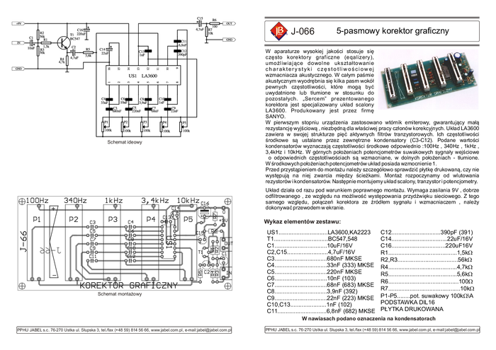 J-066 5-pasmowy korektor graficzny (eqalizer) - zestaw do montażu