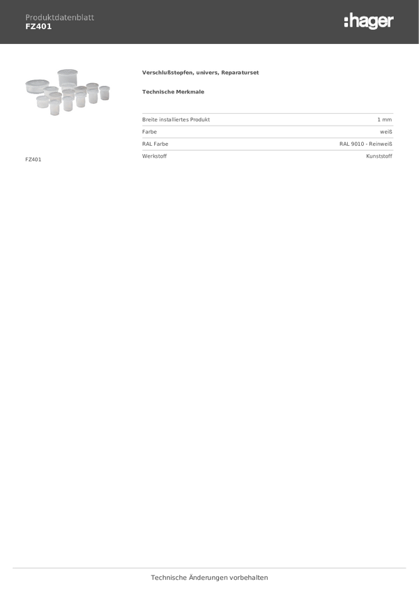 Hager FZ401 Korek zamykający tworzywo sztuczne biały 1 szt.