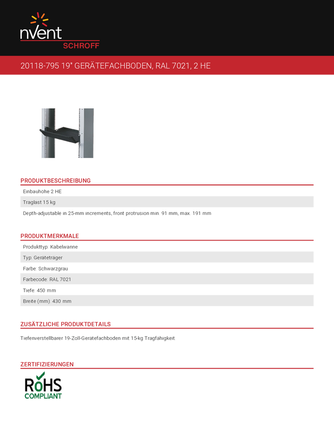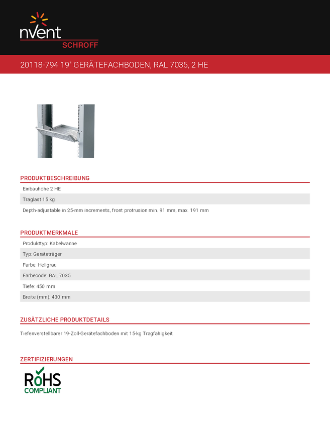 Korytko kablowe nVent SCHROFF 20118794 20118794, 1 szt.