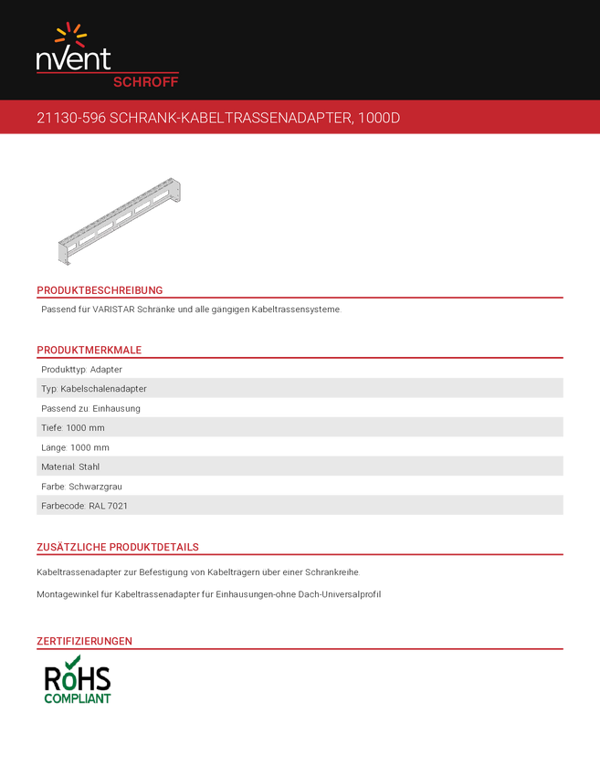Adapter korytka kablowego obudowy nVent SCHROFF 21130596 21130596, 1 szt.